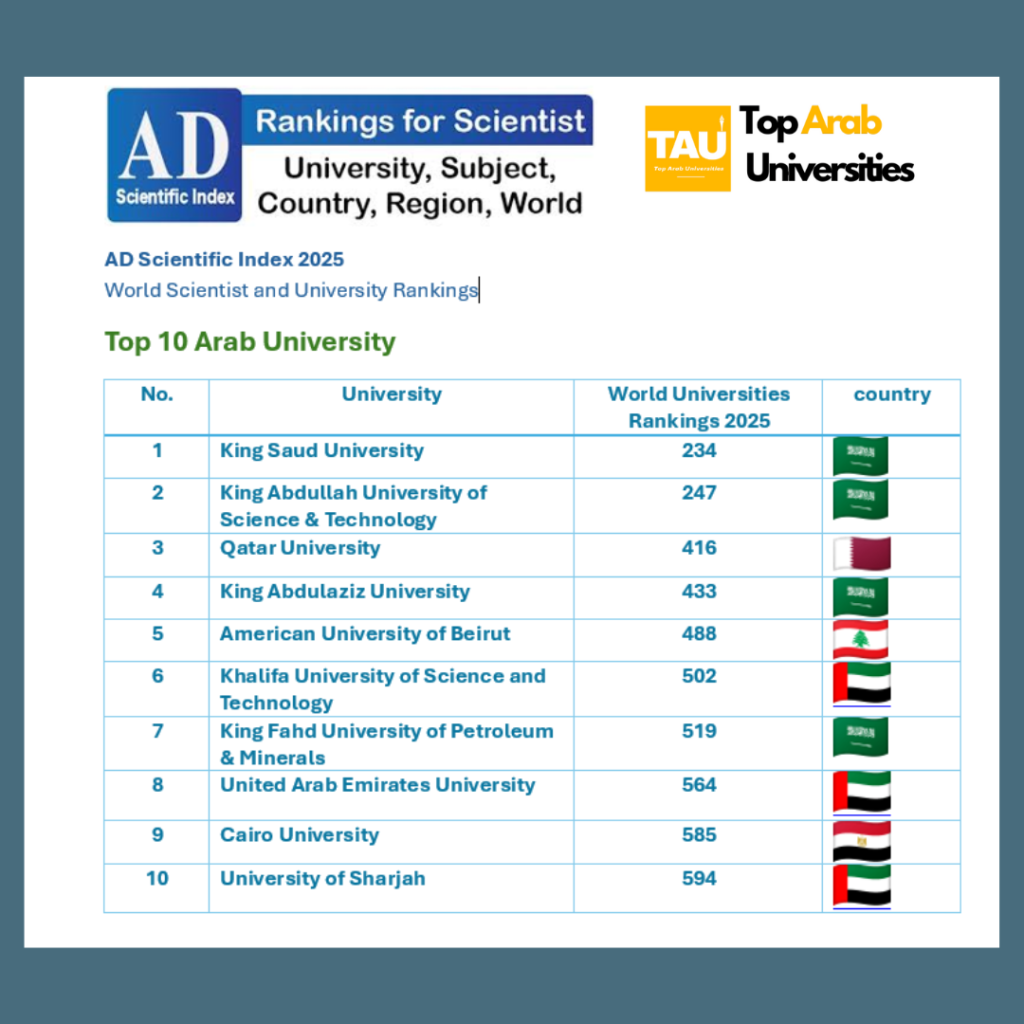 لمزيد من التفاصيل، يمكنكم الاطلاع على التقرير الكامل عبر موقع AD Scientific Index.