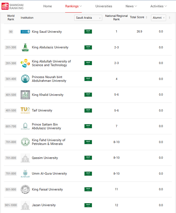 These universities in Saudi Arabia have been numerically ranked based on their positions in the overall Best Global Universities rankings.